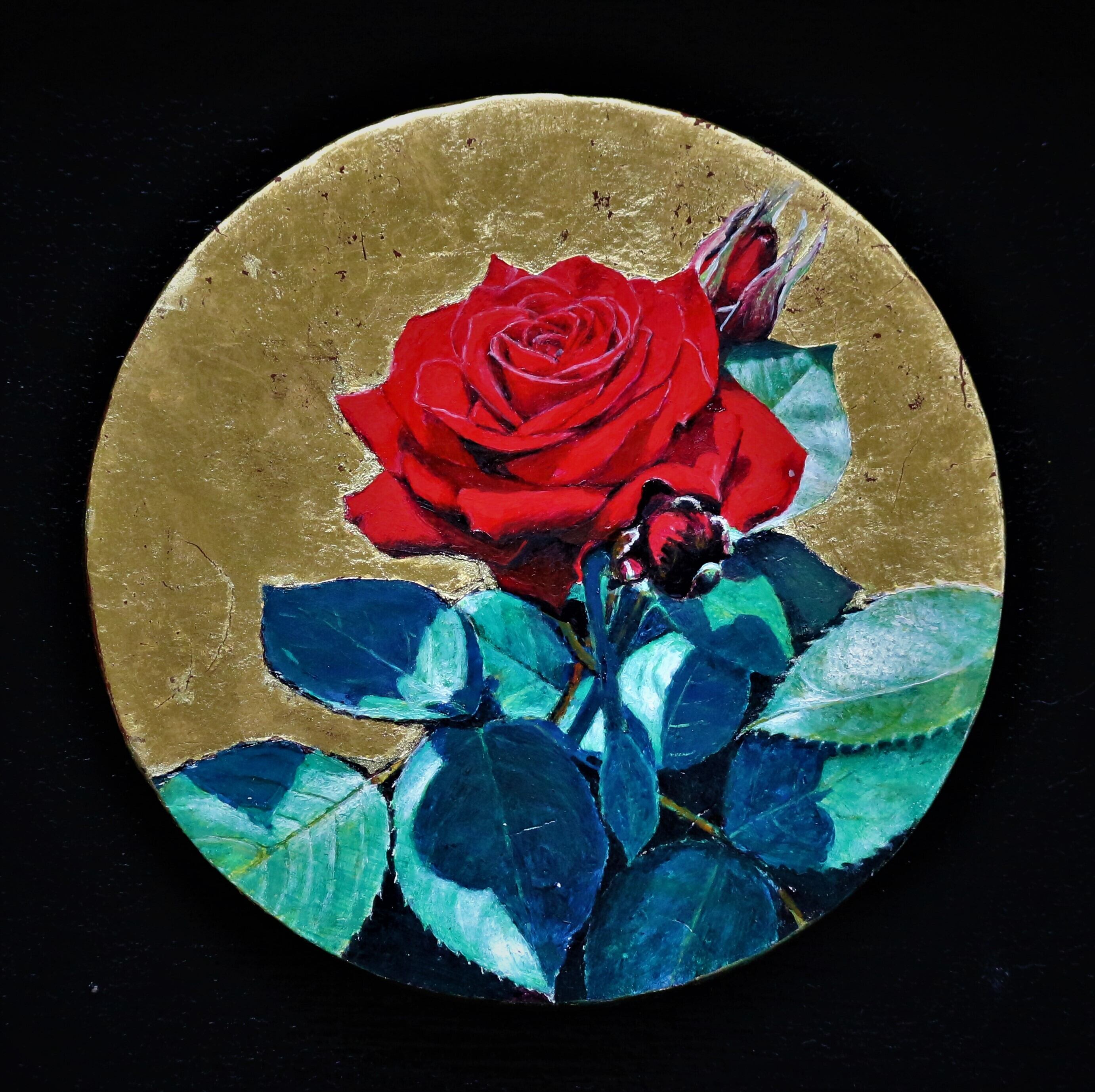 油彩、金箔/パネル、綿布、白亜地