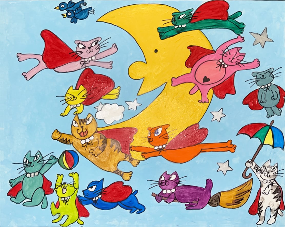 絵画「みんなで 飛んじゃお!」清水京子