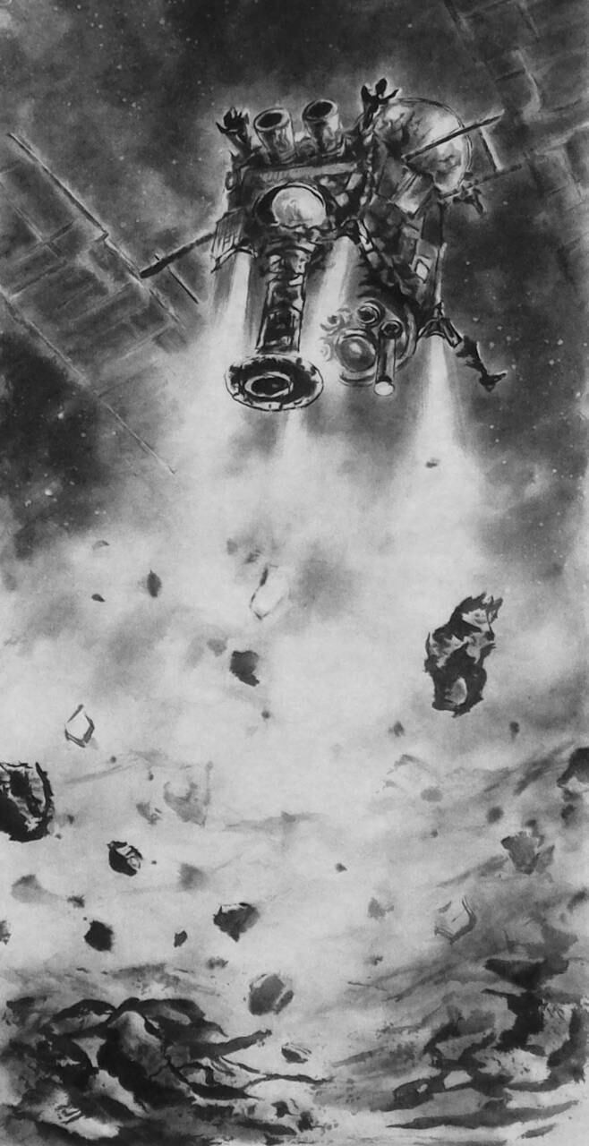 絵画(水墨)「はやぶさ2のタッチダウン」佐藤鸞峯