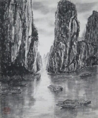 絵画(水墨)「ハロン湾」 佐藤鸞峯
