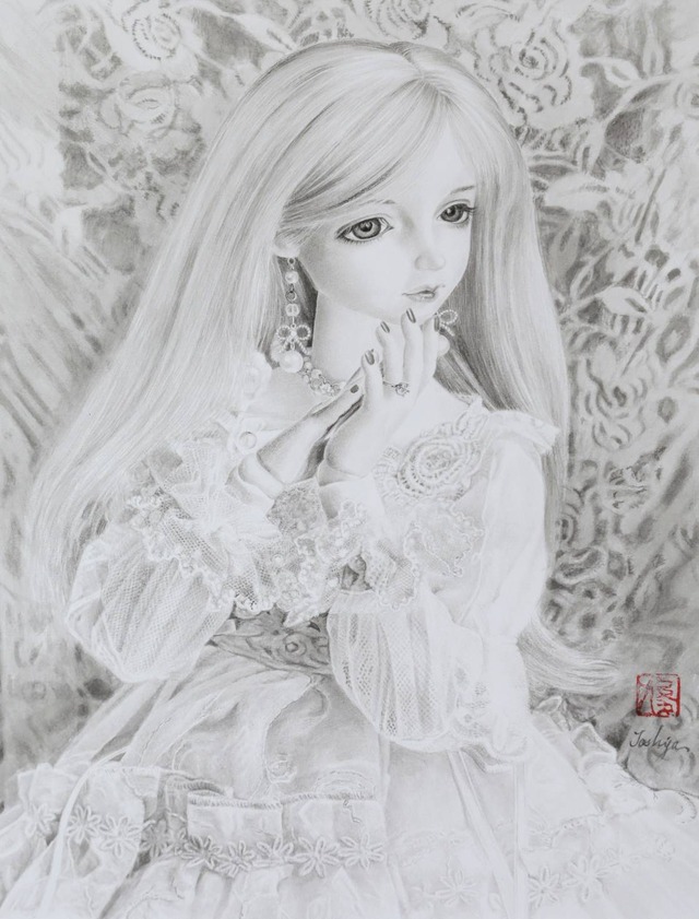 注)要在庫確認 この作品はご購入前にお問合せの上、必ず在庫をご確認ください。 ーーーーー 大塚俊爾 「ドール」 F6 410 × 318mm 墨/キャンソンミタント紙 裏 ーーーーー 肖像画(墨絵)の制作をオーダーメイドで受注します。ご家族の記念、プレゼント、ウェルカムボードなどに、手書きの温かみある作品をお届けします。写真からの制作も可能です。